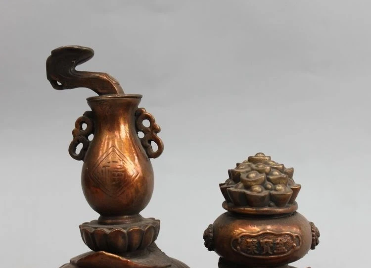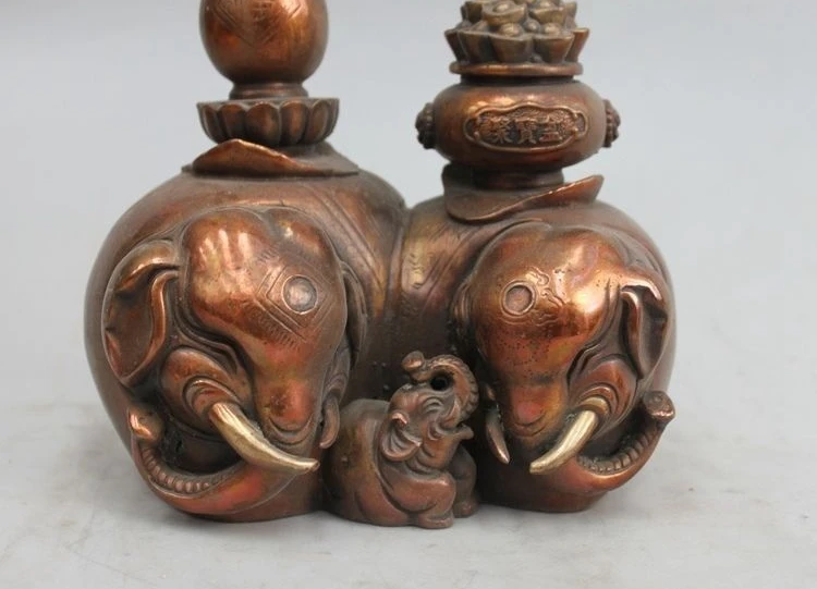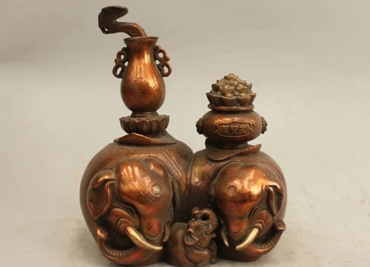 REVIEW TOP SELLER China bronze Fengshui ruyi bottle Treasure Bowl Three elephant family Statue a 0518