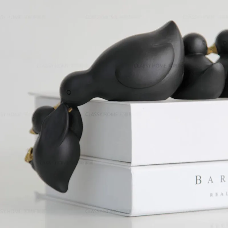 Lovely Family Duck Figurine Table Queue Duckling Statue Room Decor Craft Present Adornment Accessor