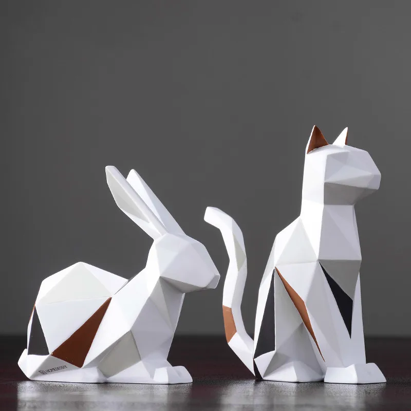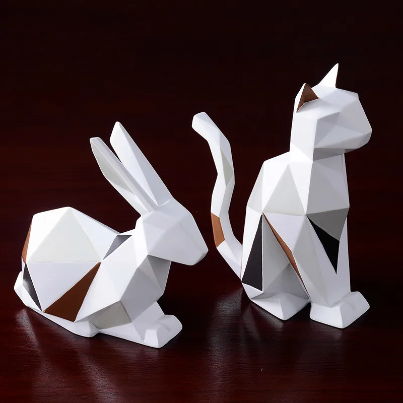 Nordic Geometric Rabbit Statue Modern Animal Cat Sculpture Home Decor Fox Miniature Model Creative