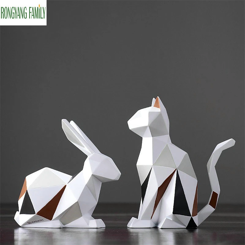 BEST Nordic Geometric Rabbit Statue Modern Animal Cat Sculpture Home Decor Fox Miniature Model Creative